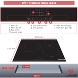 Bếp từ Bosch PUJ631BB5E có kích thước là 51x592x522mm (CxRxS) cùng với tổng trọng lượng bếp là 10,3kg.