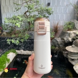 Bình có thiết kế tiện lợi với nắp bật thông minh – hỗ trợ hai cách sử dụng: uống trực tiếp hoặc dùng ống hút. Kèm theo đó là quai xách nhỏ gọn giúp dễ dàng mang theo mọi lúc mọi nơi.