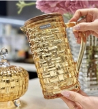 Bình thuỷ tinh Crista Home 1L hoạ tiết caro màu vàng (60202-Y)