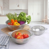 Bộ 3 rổ inox kích thước 16 – 20 – 24 cm đáp ứng mọi nhu cầu từ rửa rau củ, vo gạo đến lọc nước dùng.