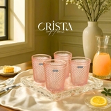 Bộ 4 cốc thủy tinh vân kim cương Crista 300ml màu hồng cao cấp là lựa chọn hoàn hảo dành cho những ai yêu thích phong cách bàn ăn tinh tế, hiện đại nhưng vẫn sang trọng. Không chỉ đơn thuần là cốc uống nước hằng ngày, bộ cốc Crista Home còn đóng vai trò như một điểm nhấn trang trí nổi bật, giúp không gian bàn ăn, bàn trà hay bàn tiệc trở nên lung linh và cuốn hút hơn. Thiết kế vân kim cương dập nổi tinh xảo giúp cốc bắt sáng cực tốt, tạo hiệu ứng lấp lánh đẹp mắt dưới ánh đèn, phù hợp sử dụng trong nhiều dịp khác nhau hoặc làm quà tặng cao cấp.