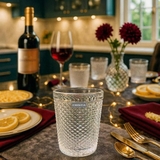 Bộ 4 cốc thủy tinh vân kim cương Crista 300ml màu trắng cao cấp là lựa chọn hoàn hảo dành cho những ai yêu thích phong cách bàn ăn tinh tế, hiện đại nhưng vẫn sang trọng. Không chỉ đơn thuần là cốc uống nước hằng ngày, bộ cốc Crista Home còn đóng vai trò như một điểm nhấn trang trí nổi bật, giúp không gian bàn ăn, bàn trà hay bàn tiệc trở nên thanh lịch và cuốn hút hơn. Thiết kế vân kim cương dập nổi tinh xảo giúp cốc bắt sáng tốt, tạo hiệu ứng lấp lánh nhẹ nhàng dưới ánh đèn, phù hợp sử dụng trong nhiều dịp khác nhau hoặc làm quà tặng cao cấp.