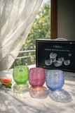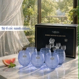 Bộ 6 cốc thủy tinh Crista Home dáng bầu vân ngang 300ml màu xanh dương (60254-B)