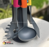 Các dụng cụ trong Bộ Dụng Cụ Nhà Bếp Đa Năng Joseph Joseph 10118 có thiết kế tay cầm nặng cùng một nấc đỡ thông minh để phần đầu của dụng cụ sẽ uôn hướng lên trên và không tiếp xúc với mặt bàn đảm bảo căn bếp luôn được sạch sẽ.