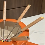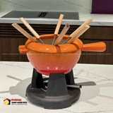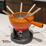 Bộ nồi Fondue Le Creuset là lựa chọn lý tưởng để thưởng thức các món lẩu pho-mát (Fondue), chocolate tan chảy, nước sốt thịt hay các món nhúng đặc biệt trong những bữa tiệc ấm cúng. Được làm từ gang đúc nguyên khối, sản phẩm mang đến khả năng truyền nhiệt và giữ nhiệt vượt trội, giúp thức ăn luôn nóng hổi trong suốt bữa ăn. Với thiết kế nhỏ gọn nhưng chắc chắn, màu cam đặc trưng nổi bật của Le Creuset và độ bền đáng kinh ngạc, bộ nồi Fondue là điểm nhấn sang trọng cho mọi buổi sum họp gia đình.