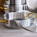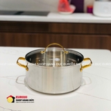 Thiết kế hiện đại, tay cầm chắc chắn, bo cong vừa vặn, tạo cảm giác thoải mái khi cầm nắm. Nắp kính chịu nhiệt giúp theo dõi quá trình nấu dễ dàng. Bộ nồi đáp ứng đa dạng nhu cầu nấu nướng hằng ngày từ luộc, hầm đến kho và hấp.