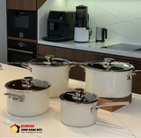 Bộ nồi inox So Home Sydney Australia (màu be) là lựa chọn lý tưởng cho gian bếp hiện đại. Sản phẩm nổi bật với chất liệu inox 304 an toàn sức khỏe, thiết kế đáy liền thân 3 lớp giúp truyền nhiệt nhanh, phân bổ đều, sử dụng được trên mọi loại bếp (từ bếp gas, bếp từ đến bếp hồng ngoại). Trang nhã gam màu be sữa dễ phối nội thất, tạo điểm nhấn nhẹ nhàng cho không gian nấu.