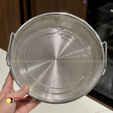 Cấu trúc lưới thoáng với các lỗ đều nhau, giúp dầu thoát nhanh nhưng vẫn giữ thực phẩm bên trong ổn định.