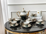 Gồm: 1 ấm 1200ml, 6 chén 200ml, âu đựng đường 300ml và Âu sữa 250ml