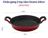 - Chảo gang 2 tay cầm Oceno 24cm màu đỏ sở hữu nhiều ưu điểm vượt trội: chất liệu gang đúc truyền nhiệt đều và giữ nhiệt cực tốt, lòng chảo phủ men gốm nhám Ceramic chống dính tốt, an toàn sức khoẻ và dễ vệ sinh, độ bền cao hàng chục năm, có thể sử dụng trên mọi loại bếp: bếp gas, bếp hồng ngoại, bếp từ…
