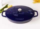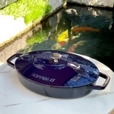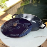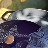 Chảo gang cá Happiness 32cm là sản phẩm nhà bếp cao cấp, thiết kế nổi bật với hình cá chép in nổi trên nắp chảo, biểu tượng của sự may mắn và tài lộc. Sản phẩm mang tông màu xanh dương trang nhã, vừa mang lại tính thẩm mỹ cao, vừa thể hiện đẳng cấp cho không gian bếp. Với dung tích 2.7 lít, chảo phù hợp để chế biến các món ăn phục vụ gia đình 2–4 người, đặc biệt thích hợp với các món kho, hầm, nướng hoặc om.