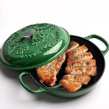 Với chất liệu gang đúc nguyên khối cùng lớp men tráng cao cấp, sản phẩm mang lại khả năng giữ nhiệt tốt, truyền nhiệt đều, lý tưởng để làm các món áp chảo, chiên, xào, hầm nhẹ hoặc nướng bánh. Đi kèm nắp gang kín giúp giữ ẩm, giữ vị và tiết kiệm năng lượng trong quá trình nấu.