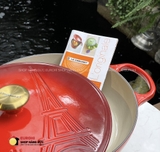 Sản phẩm được sản xuất tại Pháp, từ chất liệu gang đúc nguyên khối tráng men sứ cao cấp, giúp giữ nhiệt tốt, phân phối nhiệt đều và sử dụng được trên mọi loại bếp, kể cả bếp từ và lò nướng.