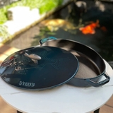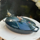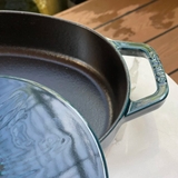 Chảo gang Staub Oval Lamer núm cá 33cm 2.8L màu xanh