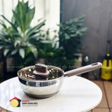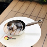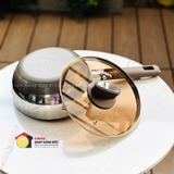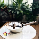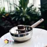 + Lớp ngoài cùng tiếp xúc với mặt bếp là thép không gỉ dẫn từ