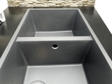 Thiết kế gồm 2 hộc rửa sâu 220 mm, phù hợp cho các gia đình có nhu cầu sử dụng thường xuyên. Chậu được lắp đặt kiểu âm bàn đá, giúp tiết kiệm diện tích, tạo cảm giác liền mạch và sang trọng cho bề mặt bếp.