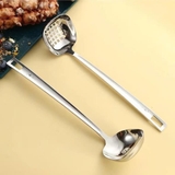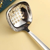 Phiên bản muôi lẩu đục lỗ vuông tiện lợi khi vớt đồ chiên, rau, mì; nước thoát nhanh, không bắn
