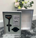 Gồm: 1 thân dao cạo + 1 lưỡi thay thế + 1 giá đỡ đứng