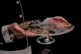 Thiết kế đĩa chân đế cao, dáng tròn cân đối, giúp món bày nổi bật và sang trọng