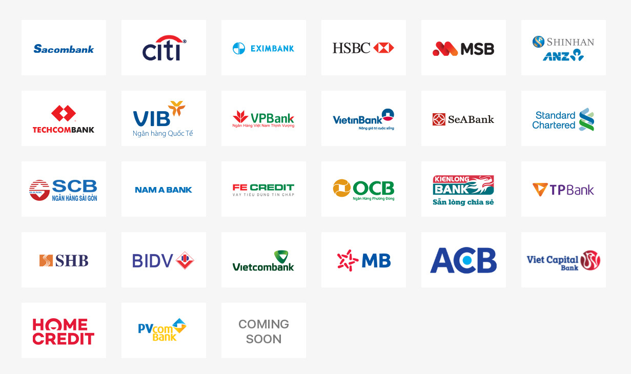 - Chấp nhận thẻ tín dụng Visa, MasterCard, JCB, Union pay của 26 ngân hàng trong nước phát hành