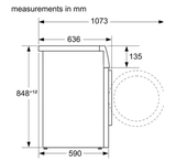 Máy giặt Bosch WGG254A0SG có kích thước là 848 x 598 x 590 mm ( CxRxS) đi kèm đó là tổng khối lượng là 85kg.