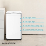 Với công nghệ giặt tiên tiến, Lumias WS050WH có sức chứa 3.0kg, đạt tiêu chuẩn tiết kiệm điện cấp 1 và tiết kiệm nước hiệu quả, giúp giảm chi phí sinh hoạt cho gia đình bạn và góp phần bảo vệ tài nguyên, môi trường.