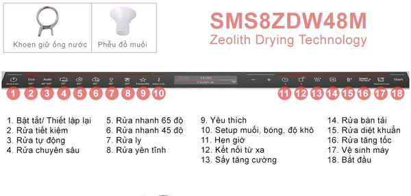 Công nghệ sấy khô Zeolith theo luồng khí nóng 3D giúp cho máy Bosch SMS8ZDW48M đảm bảo sấy bát đĩa khô đồng đều và hiệu quả.