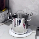 Nồi được làm từ chất liệu inox cao cấp, an toàn cho sức khỏe, không gỉ sét và chịu nhiệt tốt. Bề mặt sáng bóng, dễ vệ sinh sau khi sử dụng, đồng thời giữ được độ bền đẹp qua thời gian. Đáy nồi dày dặn giúp truyền và giữ nhiệt đều, tiết kiệm năng lượng, phù hợp với mọi loại bếp, bao gồm cả bếp từ.