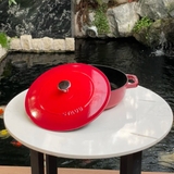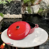 Nồi chảo gang Staub Chistera 24cm 2.75L màu đỏ (Cherry Red) là sự kết hợp tuyệt vời giữa thiết kế truyền thống và công nghệ hiện đại, mang đậm dấu ấn thủ công của nước Pháp. Được làm từ chất liệu gang tráng men cao cấp cùng nắp nồi thiết kế Chistera độc quyền, sản phẩm không chỉ là dụng cụ nhà bếp mà còn là biểu tượng của sự đẳng cấp, tinh tế và hiệu quả trong từng món ăn.