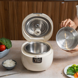 Đặc biệt là công nghệ gia nhiệt 3D tạo luồng nhiệt luân chuyển đều khắp từ phía trên, phía đáy nồi và xung quanh thành nồi, giúp hạt gạo chín đều và chín kỹ.