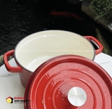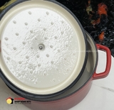 Chất liệu gang đúc tráng men cao cấp: Giữ và truyền nhiệt đều, giúp món ăn chín đều, thơm ngon.