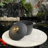 Đây là lựa chọn lý tưởng để nấu cơm, hầm thịt, nấu cháo, kho cá hay làm các món ăn cần thời gian nấu lâu. Nắp nồi được thiết kế kín hơi, giúp tuần hoàn hơi nước, làm món ăn không bị khô và thơm ngon hơn. Tông màu đen nhám mang lại vẻ sang trọng và dễ dàng phối hợp với mọi không gian bếp.