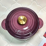 Nồi gang Le Creuset Rice Pot Fig 18cm 2L màu tím được thiết kế riêng cho việc nấu cơm, cháo và các món hầm nhẹ. Hình dáng bo tròn tối ưu luân chuyển hơi nước, kết hợp nắp vòm đặc trưng giúp giữ lại độ ẩm hoàn hảo cho từng hạt gạo. Lớp men nội thất sáng, chống dính nhẹ, dễ vệ sinh và hoàn toàn an toàn cho sức khỏe. Với dung tích 2L, nồi phù hợp cho gia đình 2–4 người dùng hằng ngày.