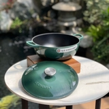 Chất liệu gang tráng men cao cấp: Giữ nhiệt lâu, truyền nhiệt đều, giúp món ăn chín sâu từ trong ra ngoài, giữ trọn hương vị và dinh dưỡng.
