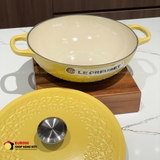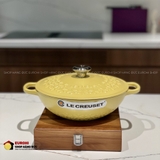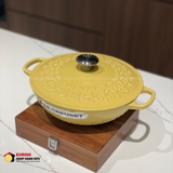 Nồi gang sâu lòng Le Creuset Mimosa hoa mai vàng 22cm 1.8L được làm từ gang đúc nguyên khối tráng men cao cấp, bền bỉ và giữ nhiệt hoàn hảo. Thiết kế sâu lòng giúp tăng dung tích nấu nướng, phù hợp cho các món kho, hầm, soup, nấu cháo hoặc chiên ngập dầu. Sắc vàng tươi kết hợp họa tiết hoa mai được in tinh tế trên nắp, mang lại cảm giác sang trọng, rực rỡ và đậm chất Á Đông.