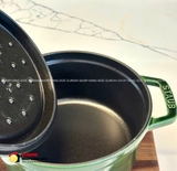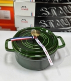 Nồi gang Staub 18cm 1.7L màu xanh húng là lựa chọn lý tưởng cho những ai yêu thích nấu ăn và muốn sở hữu một sản phẩm vừa đẹp vừa bền. Sản xuất tại Pháp bằng gang đúc nguyên khối, nồi có khả năng giữ nhiệt lâu, truyền nhiệt đều, giúp món ăn chín đều và giữ trọn hương vị. Màu xanh húng mới lạ, hiện đại, mang lại điểm nhấn sang trọng cho gian bếp.