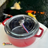 Màu đỏ cherry đặc trưng của Staub giúp sản phẩm nổi bật trong mọi không gian bếp. Thiết kế hiện đại phù hợp với cả phong cách Á và Âu, có thể sử dụng trực tiếp để bày món ăn trên bàn.