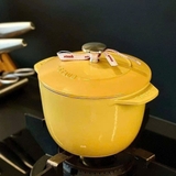 Nồi được làm từ gang đúc nguyên khối, tráng men mờ cả trong và ngoài giúp giữ nhiệt tốt, nấu nướng tiết kiệm năng lượng. Màu vàng mang lại cảm giác ấm áp, nổi bật, dễ phối với nhiều không gian bếp hiện đại.