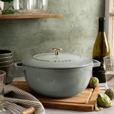 Nồi gang Staub Cocotte Chistera 16cm 1.74L màu xanh bạch đàn là sản phẩm cao cấp của thương hiệu Staub (Pháp), nổi bật với thiết kế Cocotte cổ điển kết hợp phong cách hiện đại, mang đến hiệu năng nấu nướng vượt trội và vẻ đẹp tinh tế cho gian bếp. Dung tích 1.74L phù hợp cho các món hầm nhỏ, súp, kho và các món ăn cá nhân.