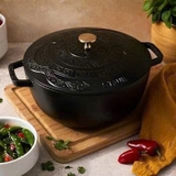 Nồi gang Staub Oven Snake Lip được làm từ gang đúc nguyên khối, phủ lớp men chống dính cao cấp bên trong giúp bảo vệ bề mặt, hạn chế bám dính và dễ dàng vệ sinh. Màu sắc đen rắn mạnh mẽ cùng thiết kế cổ điển tạo nên vẻ ngoài tinh tế, sang trọng, phù hợp cho mọi không gian bếp hiện đại hoặc truyền thống.
