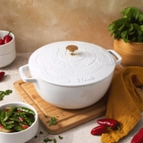 Nồi gang Staub Oven Snake Lip rắn trắng 26cm 4.9L là dòng sản phẩm cao cấp thuộc bộ sưu tập giới hạn của thương hiệu Staub – biểu tượng của chất lượng, độ bền và thiết kế tinh xảo đến từ Pháp. Với màu trắng tinh khôi sang trọng cùng họa tiết rắn uốn lượn chạm nổi trên nắp, đây không chỉ là một chiếc nồi nấu ăn mà còn là tác phẩm nghệ thuật trong căn bếp của bạn.