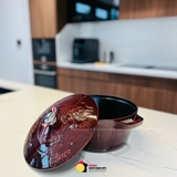 Chất liệu gang đúc nguyên khối – Siêu bền, giữ nhiệt và phân bổ nhiệt đều, giúp món ăn chín đều, giữ trọn hương vị.