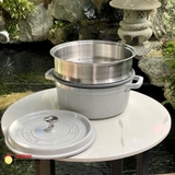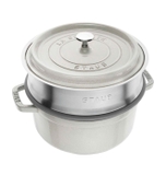 Nồi gang Staub White Truffle 24cm 3.7L kèm xửng hấp là dòng sản phẩm cao cấp đến từ thương hiệu Staub nổi tiếng của Pháp. Sở hữu màu White Truffle thanh lịch, tinh tế và chất liệu gang tráng men bền bỉ, chiếc nồi trở thành điểm nhấn đẳng cấp trong mọi gian bếp. Với dung tích 3.7L và xửng hấp tiện lợi, sản phẩm có thể thực hiện nhiều phương pháp chế biến như hầm, nấu, kho, hấp, nướng… đáp ứng tối đa nhu cầu nấu ăn hằng ngày và các bữa tiệc gia đình.