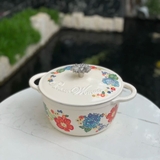 Chất liệu gang tráng men cao cấp, dẫn nhiệt đều và giữ nhiệt lâu