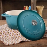 Nồi gang The Pioneer Woman 26cm màu xanh đậm với thiết kế nắp trơn tinh tế là lựa chọn hoàn hảo cho những ai yêu thích sự đơn giản nhưng vẫn đảm bảo hiệu quả nấu nướng cao. Với gam màu xanh đậm hiện đại, chất liệu gang đúc phủ men cao cấp và dung tích lý tưởng, chiếc nồi này không chỉ giúp nấu ăn ngon mà còn làm nổi bật không gian bếp.