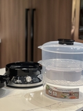 Nồi Hấp Điện Tefal Ultra Compact VC204810 được thiết kế với 3 tầng hấp, tổng dung tích lên đến 9L, giúp bạn chế biến lượng lớn thức ăn chỉ trong một lần nấu. Các tầng hấp có thể xếp chồng gọn gàng, tiết kiệm không gian lưu trữ và phù hợp với mọi căn bếp, từ nhỏ đến lớn. Đặc biệt, thiết kế này cho phép hấp nhiều loại thực phẩm cùng lúc – từ rau củ, hải sản đến thịt – mà không lo lẫn mùi, đảm bảo mỗi món giữ được hương vị riêng. Với kích thước chỉ 30 x 27.5 x 38 cm, sản phẩm là lựa chọn lý tưởng cho gia đình đông thành viên hoặc các bữa tiệc tại nhà.