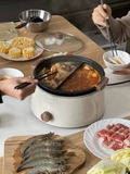- Nổi lẩu điện 2 ngăn Kaiyo gồm: 1 bếp điện độc lập và 1 nồi nhôm 2 ngăn phủ chống dính Teflon dùng đa chức năng: lẩu, chiên/rán, xào/nấu … với 2 mức nhiệt, phù hợp chế biến nhiều món ăn khác nhau.
