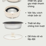 Nắp kính cường lực trong suốt: Giúp quan sát món ăn trong khi nấu mà không cần mở nắp, giữ nhiệt và giữ hương vị tốt hơn