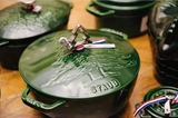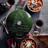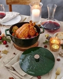 Nồi sở hữu nắp tạo hình lá thông tinh xảo, từng đường gân được đúc nổi tỉ mỉ, mang vẻ đẹp nghệ thuật và cảm giác gần gũi thiên nhiên. Màu xanh lá thông trầm sang trọng, phù hợp cả khi sử dụng trong bếp lẫn bày trực tiếp trên bàn ăn.