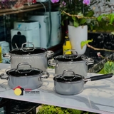 Tay cầm bằng thép không gỉ chắc chắn, cách nhiệt tốt. Nắp kính trong suốt giúp dễ dàng quan sát thực phẩm trong quá trình nấu mà không cần mở nắp.